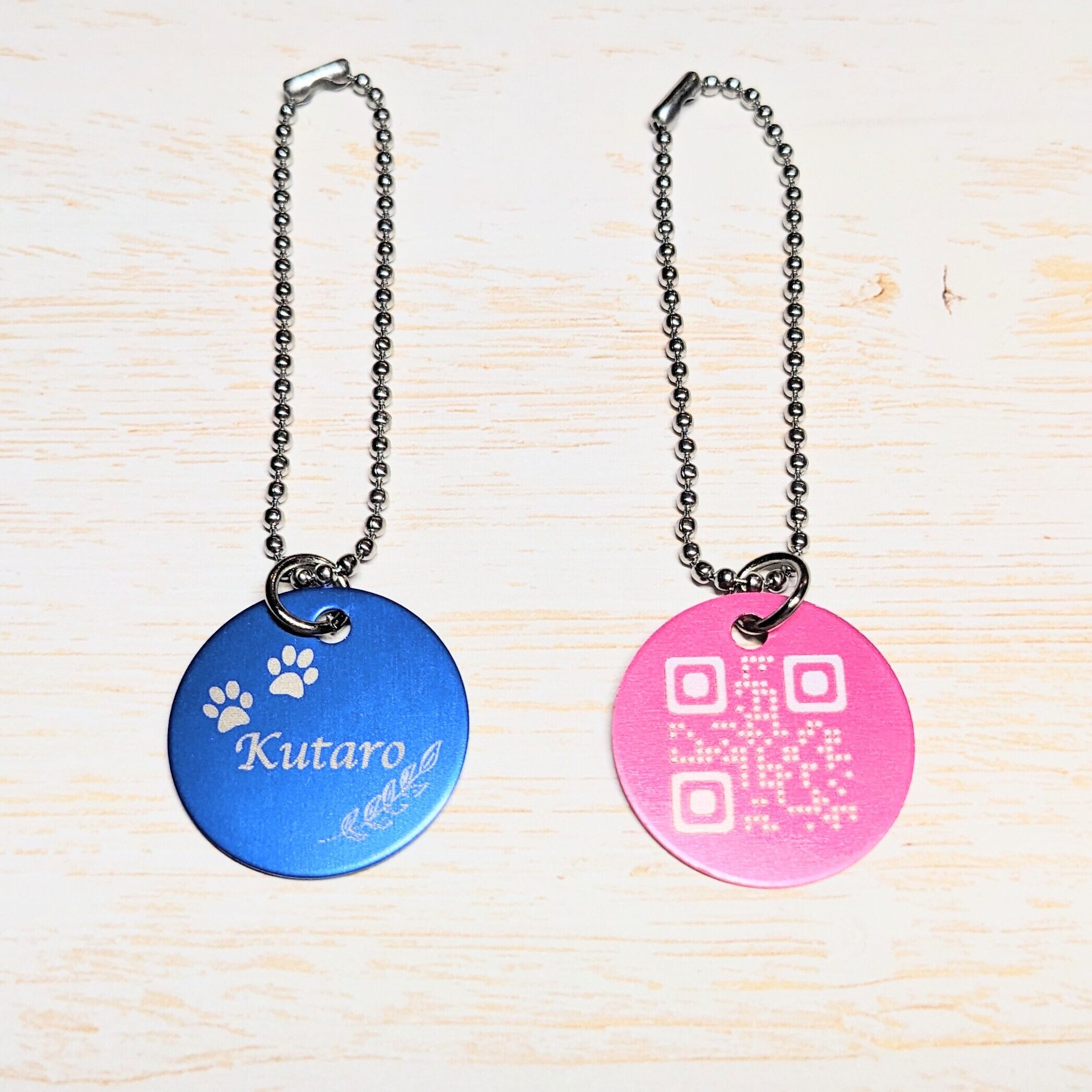 迷子札の裏面にはQRコードか電話番号をご希望で彫刻できて、機能性もおしゃれも一石二鳥です★**